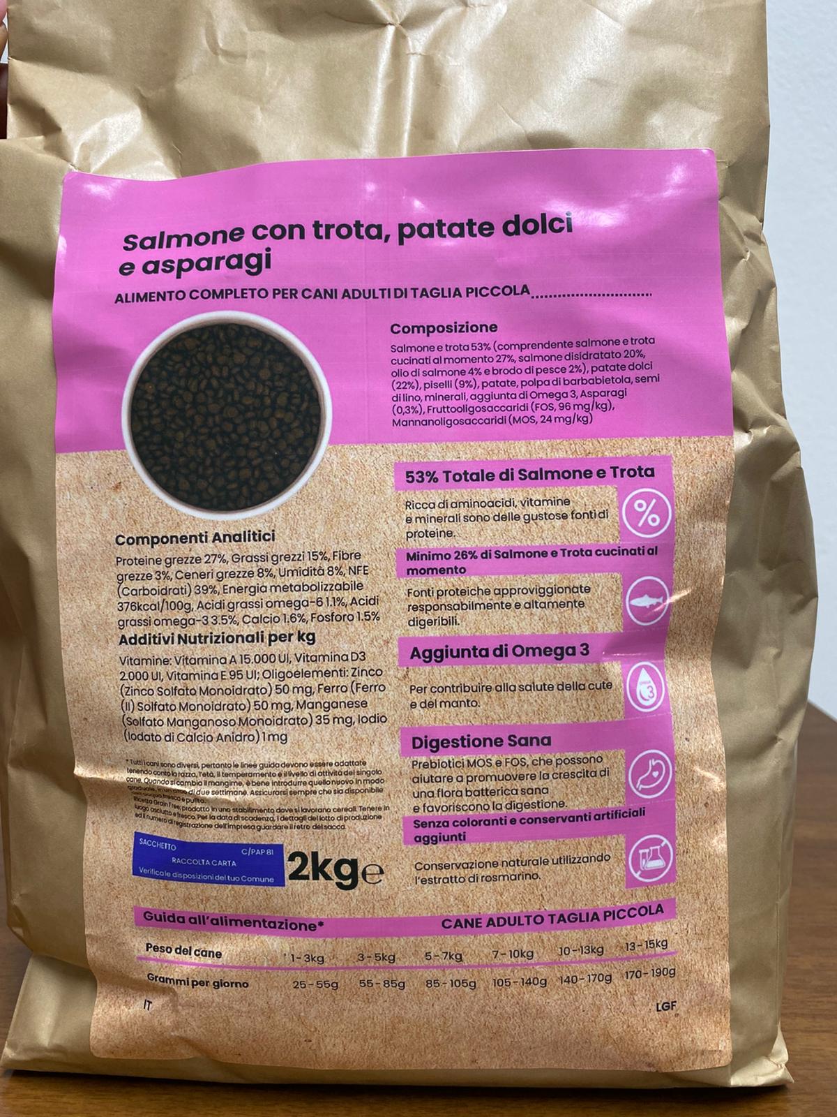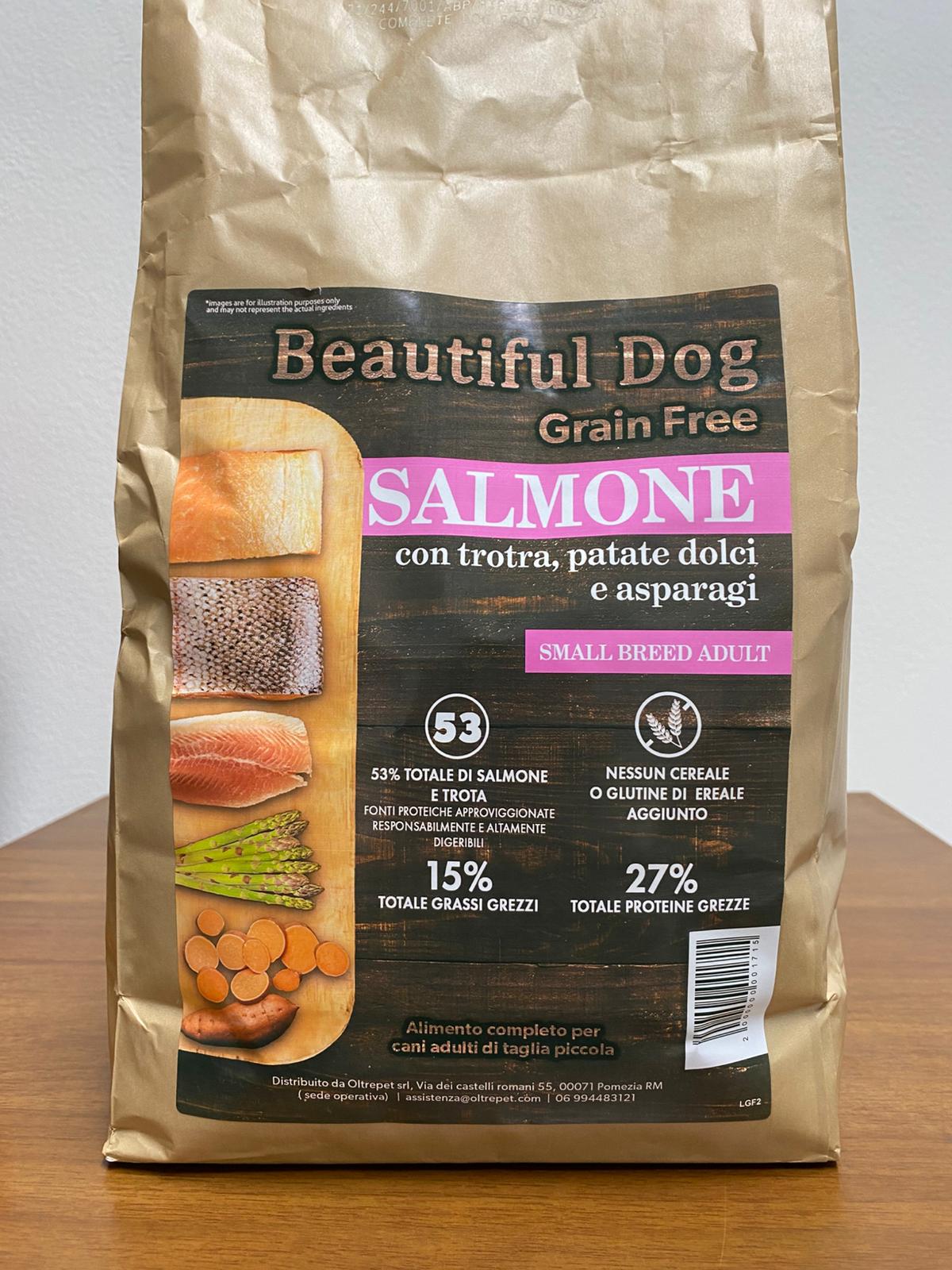 Beautiful Dog Salmone con Trota, Patate Dolci e Asparagi Grain Free Cane Adulto Taglia Piccola 2Kg