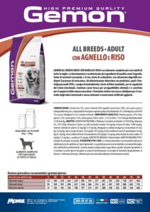 GEMON ALL BREEDS ADULT CON AGNELLO E RISO è un alimento completo per cani adulti di tutte le taglie. La formulazione è caratterizzata da ingredienti di qualità come l’agnello, fonte di nutrienti essenziali, e il riso, fonte di carboidrati, resi altamente digeribili mediante il processo di estrusione. Un’alimentazione bilanciata con prebiotici, quali i fruttoligosaccaridi (FOS), e polpa di barbabietola, fonte di fibre insolubili, per la regolarità del tratto intestinale. Contiene carne fresca per un’appetibilità ottimale e L-carnitina per il supporto della massa muscolare.