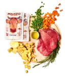 Questo pasto fresco è preparato con carne di manzo di alta qualità, senza cereali e arricchito con ingredienti selezionati, ideali per una dieta bilanciata e priva di additivi o conservanti artificiali.