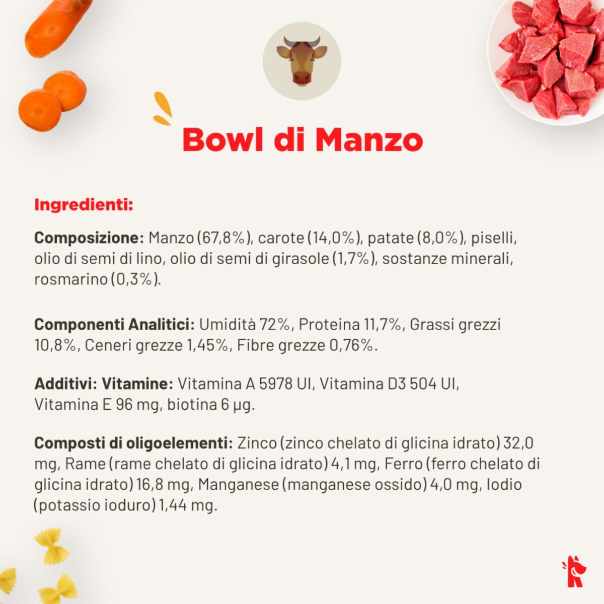 • Comodità nella Conservazione: Il nostro alimento fresco mantiene inalterati i suoi valori nutrizionali anche fuori dal frigorifero, rendendo più facile la gestione della dieta del tuo cane senza compromessi sulla freschezza.