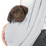 Borsa per trasportare frontalmente cuccioli e cani piccoli fino a 5 kg, per un contatto ottimale e per mantenere le mani libere, guinzaglio corto interno, materiale elastico. Colore: grigio/menta.