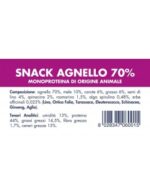 Composizione: Agnello 70%, mele 10%, carote 6%, grasso 6%, semi di lino 4%, spinacina 2%, rosmarino 1,5%, alga spirulina 0,48%, erbe officinali 0,025% (Lino, Ortica Folia, Tarassaco, Eleuterococco, Echinacea, Ginseng, Aglio).