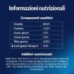 - Modalità d’uso e razione giornaliera: per un gatto adulto di circa 4kg, somministrare da 3 a 4 buste al giorno in almeno due pasti separati.