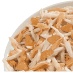 Filetti di vero petto di pollo presenti in grande quantità e fiocchi di salmone.